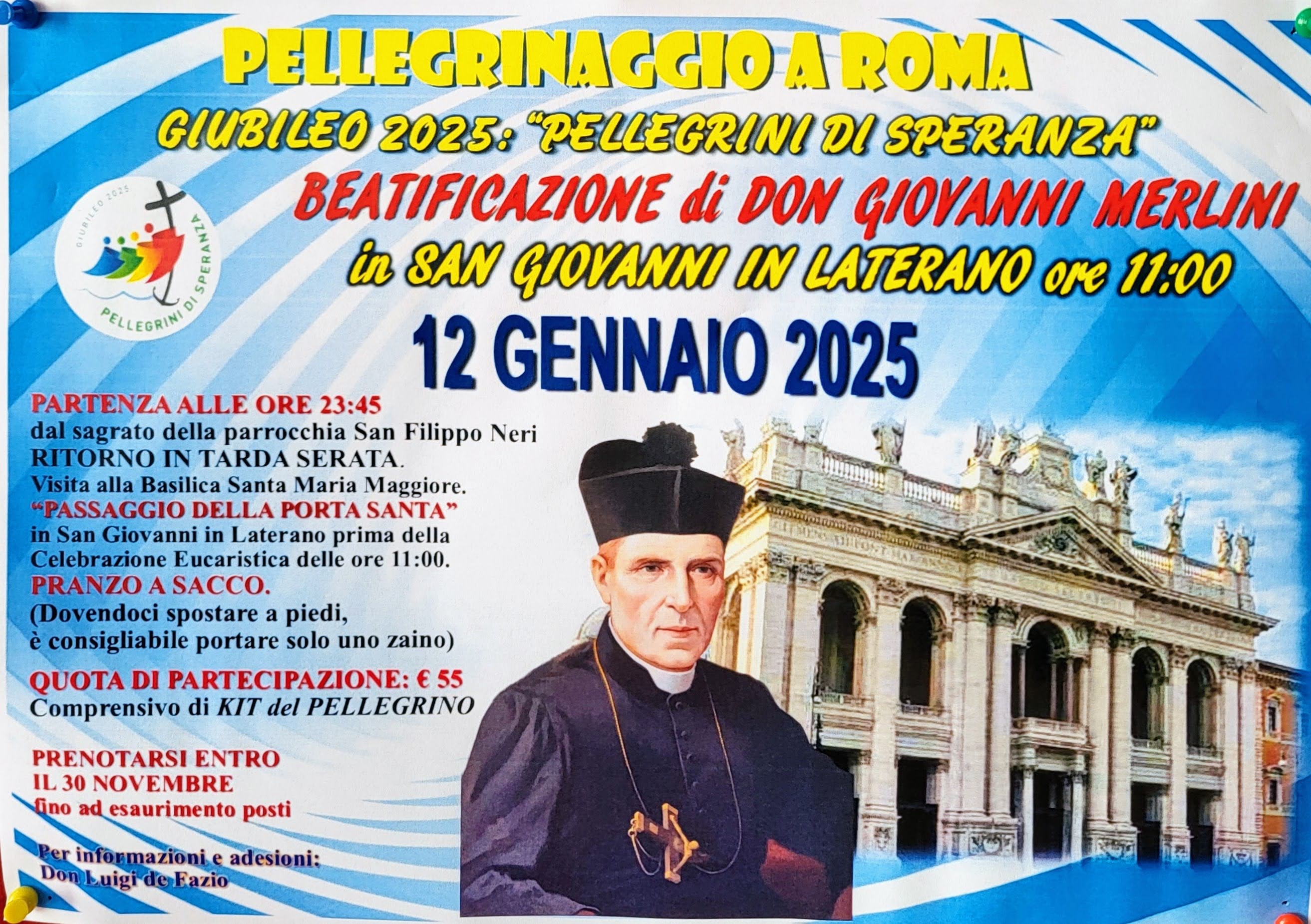 Info per il pellegrinaggio organizzato in occasione della beatificazione di don Giovanni Merlini Roma, 12 gennaio 2025